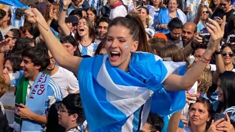 "Somos campeones del mundo. Este día me lo guardo para siempre en el corazón. Qué lindo es ser argentino, carajo", escribió la actriz al compartir el especial momento, mientras celebra sobre los hombros de un amigo vestida con los colores de la Selección.