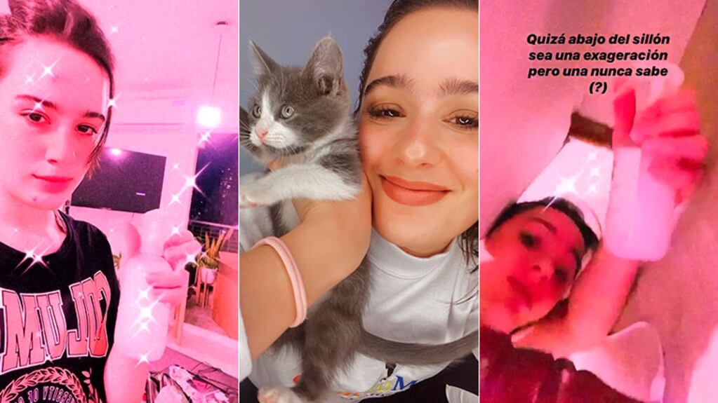 "Quizás abajo del sillón sea una exageración, pero una nunca sabe. ¡Tengo que lavar todo! Me quedé sin sábanas y no puedo usar la frazada. Necesito una granada desinfectante en mi hogar y salir corriendo lejos. ¡Y necesito un permiso para salir, Albert (por el Presidente)", agregó Peña, poniéndole humor a la estresante situación. Una vez todo desinfectado, Flor Jazmín Peña le abrió la puerta del baño a su gatito y concluyó: "Budín me mira con cara de odio".