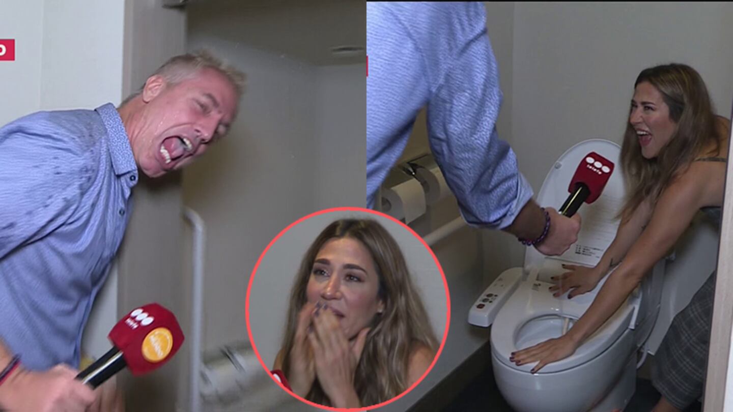 Jimena se acercó al sanitario y fue contando cómo funcionaba: “Hay un sensor y siempre está calentito el borde. Tiene un montón de opciones”. En ese momento, Marley contó: “Ese botón es para que te limpie la cola cuando terminás" y, acto seguido, Barón apretó el botón y ¡el conductor terminó empapado!