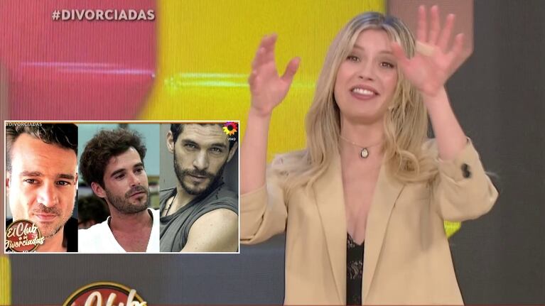 “Vamos a hacer uno más rapidísimo y lo tienen que sacar. Acá vemos a Chano Charpentier, Nico Cabré y Michel Noher”, dijo, tentada. Y agregó, en referencia a los conocidos romances que tuvo su ex antes de conocerla: “¡En todas va a estar Nico!”.