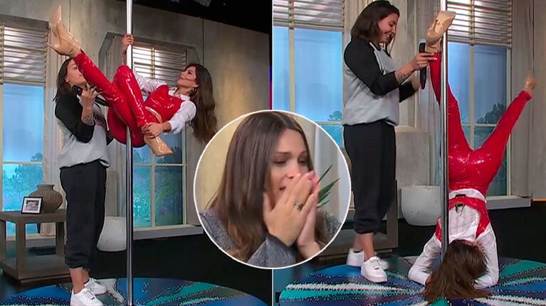"Barby te hace la vertical, todo. El pelo es re importante. Ahí va a pasar la profe, Joaquina, a indicarle", dijo Pampita, sin imaginar que Barby Franco haría la práctica sin miedo alguno y se caería de cabeza.