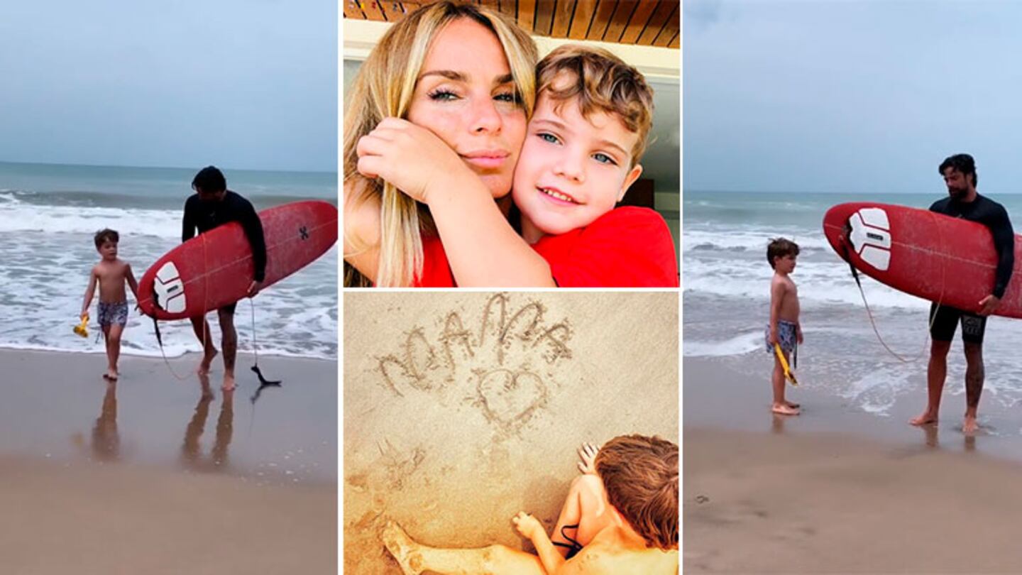 En esa jornada playera, Sabrina también filmó a Luciano, con la tabla de surf debajo del brazo, jugando en el mar con el pequeño.