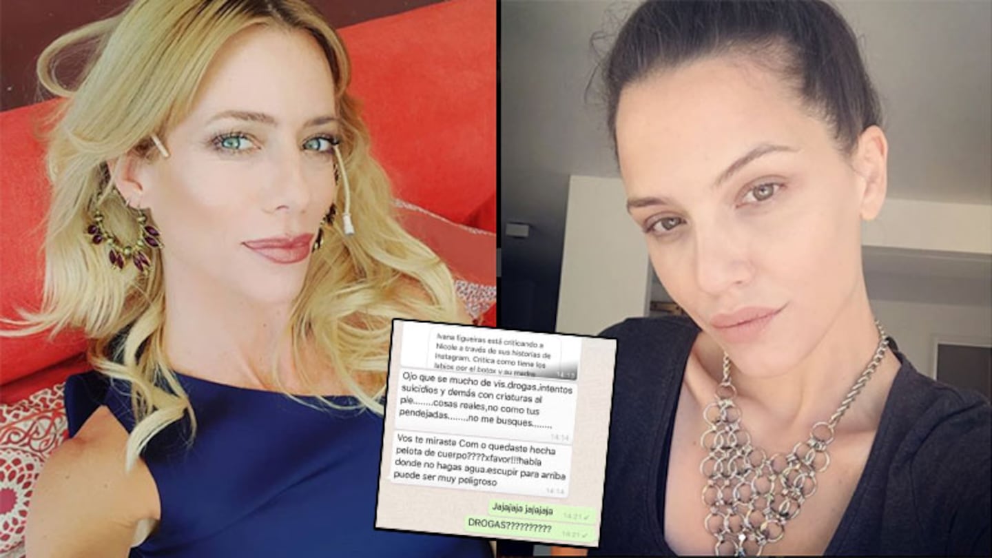 Luego, la panelista de América emitió al aire un mensaje de voz de Figueiras. “Si, cuando Nicole estaba llorando el otro día en la televisión, todas mis amigas que sabían me reenviaban este chat. No lo podían creer. Yo nunca hablé de este tema, nunca lo conté, pero el mensaje es real. Me lo mandó Nicole hace dos o tres meses porque yo subí una historia a Instagram con mi novio riéndome porque tenía él el labio hinchado. Y se ve que una seguidora le avisó a Nicole, que atacada se lo autoadjudicó porque yo nunca la nombré a ella en el video. Era un chiste interno con mi pareja. A raíz de ese video me amenazó, la verdad fue horrible. Primero que no es verdad y segundo, si fuera verdad, es algo que sería un problema mío. Me pareció muy fuerte, muy agresivo. De última, si me quería decir lo del cuerpo, pero ya hablar de temas tan graves como drogas, suicidio, me pareció una locura”, dijo Figueiras.