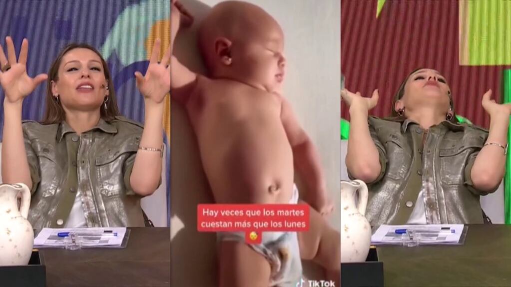 “A veces duerme así, no sé cómo hace con el hueso y no se cae para atrás. No entiendo cómo hace. Si está durmiendo así, ¿no se cae el brazo para atrás?”, se preguntó la conductora de Pampita Online, imitando con sus manos la posición que adopta su pequeña.
