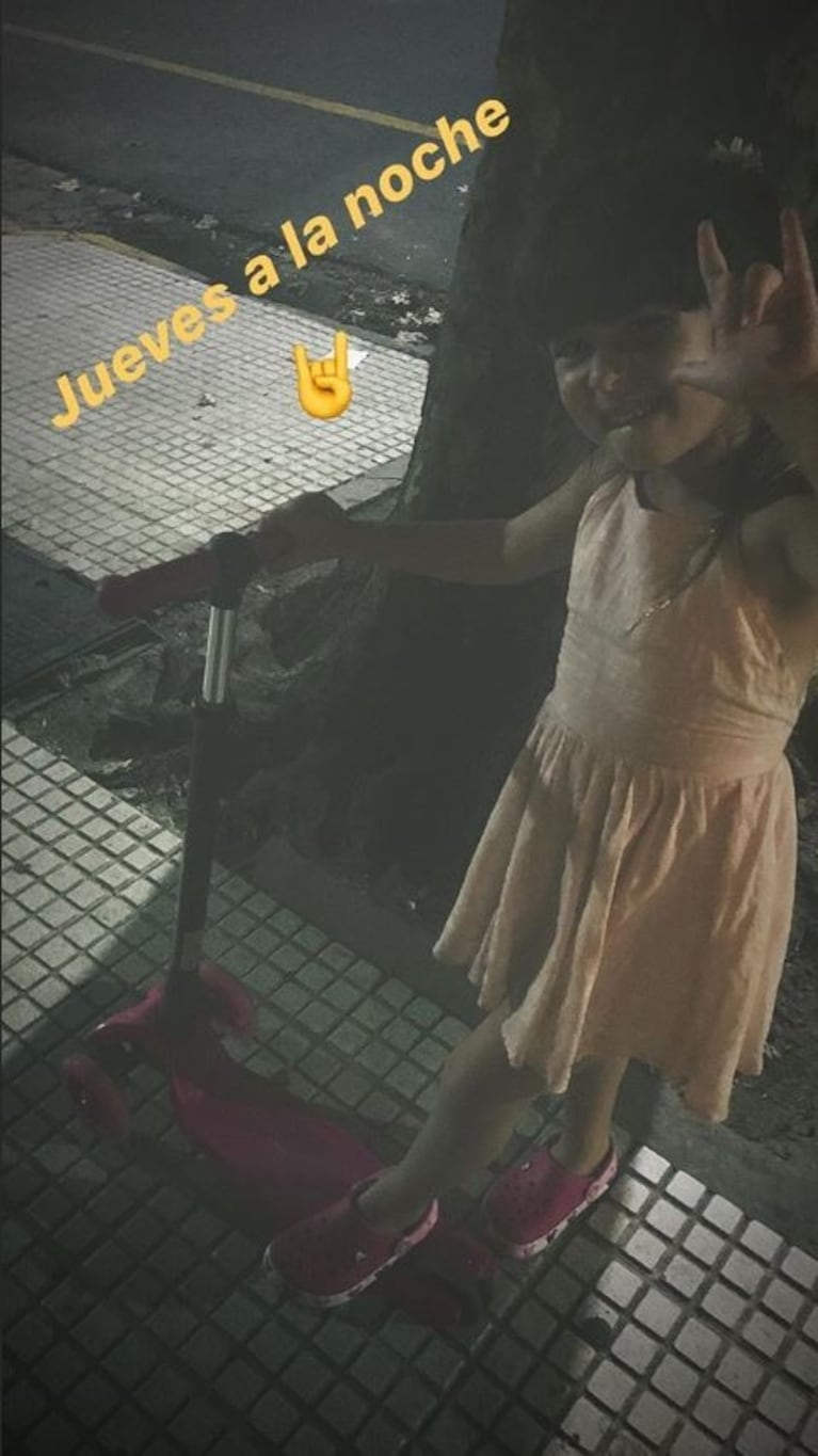 A través de Instagram, la actriz compartió imágenes del divertido paseo que dieron. La nena, que ama andar en monopatín, aprovechó para jugar en la calle bajo la atenta mirada de su mamá, a tono con las buenas temperaturas de Buenos Aires. “Jueves a la noche”, puso Griselda sobre una de las tiernas imágenes, que incluía una muy tierna de su hija tomando un helado.