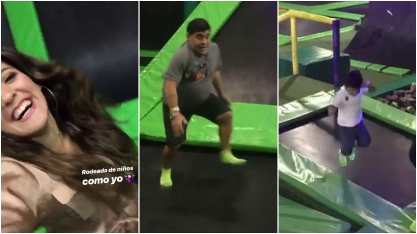 La hija del Diez compartió en Instagram de los tres saltando en un complejo de camas elásticas, juegos que disfrutó con todo el nene y que le permitió sacar a Jana y al mismo exfutbolista su lado más lúdico. Así todos aparecen saltando, haciendo acrobacias y a pura risa en el entretenimiento.
