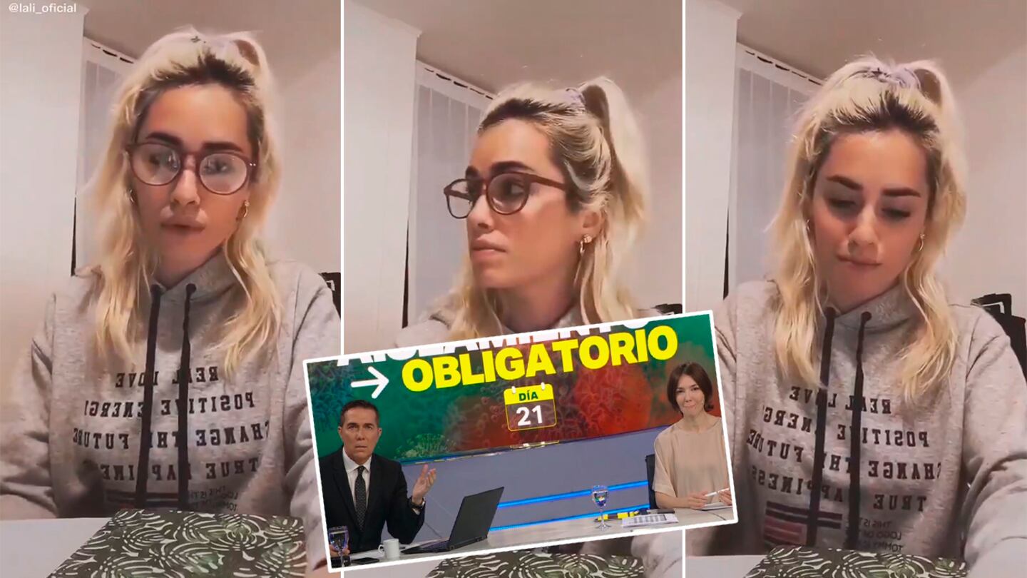 "Bueno, historias de todo tip...", alcanza a decir Lali -interpretando a la periodista- hasta que Rodolfo la interrumpe. "Qué estúpida, por Dios. Perdón, eh... Pero hay que ser estúpida. La policía que tiene que estar cuidándonos a todos llevándote a tu casa, vos transmitiendo por internet y haciéndote la viva... Te quedó una causa penal y ojalá pagues por eso", expresó al referirse a una modelo que se escondió en un baúl para violar la cuarentena obligatoria.