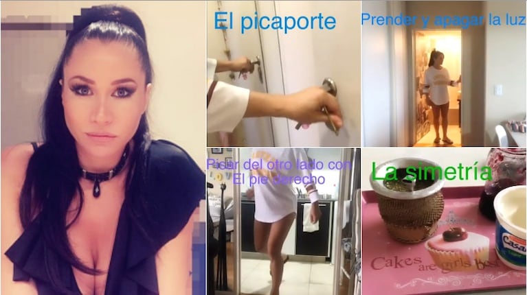 En la imágenes se ve a Adabel prendiendo y apaganda la luz en reiteradas ocasiones, tocando el picaporte despues de cerrar la puerta, ubicando los objetos en perfecta simetría y entrar a los diferentes ambientes de la casa con el pie derecho.