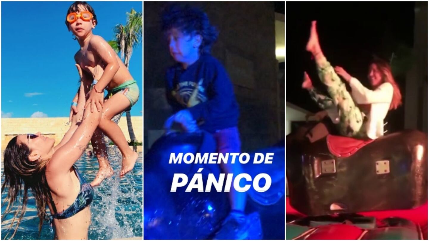 Pileta, playa, buena gastronomía y muchos shows. Los días de Jimena acompañada del pequeño tiene todos los ingredientes para que sea una estadía especial. Sin embargo, unas de las actividades más divertidas fue cuando disfrutaron de un toro mecánico que había en el hotel donde se hospedan.