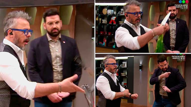 Presto a ser lo más breve posible, Donato le dio las indicaciones al “Loco” para sacar una pasta perfecta y le mostró cómo cortar un apio con dos movimientos magistrales que fascinaron a Betular. “Por ejemplo, yo ya de una usaría solo lo que necesitás y ¡zak!”, le dijo De Santis a Montenegro mientras observaba la divertida mímica de su colega.