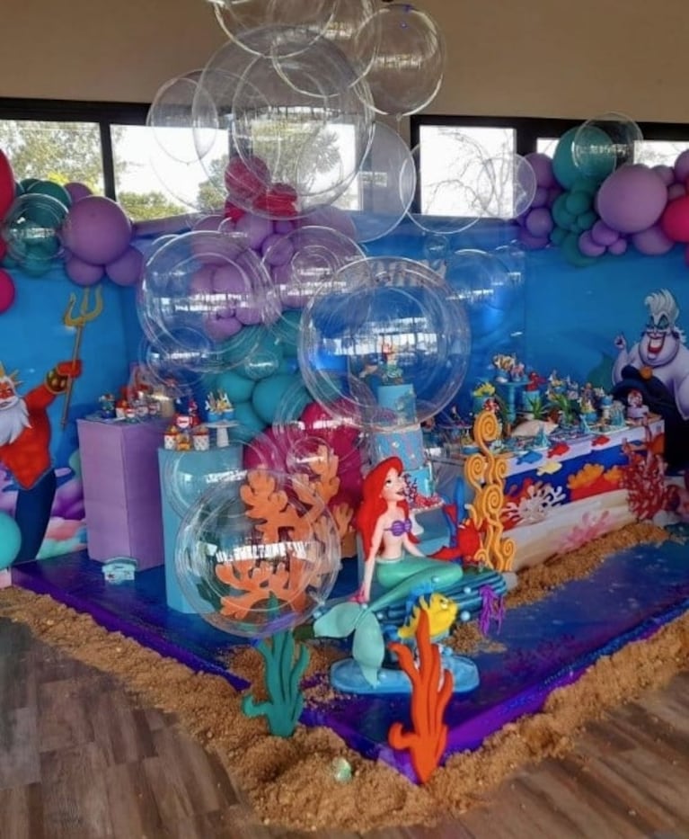 Además de la mesa dulce y del disfraz de Donna, la torta también tenía figuras de La Sirenita y hasta la piñata era de la forma de la protagonista de la peli.