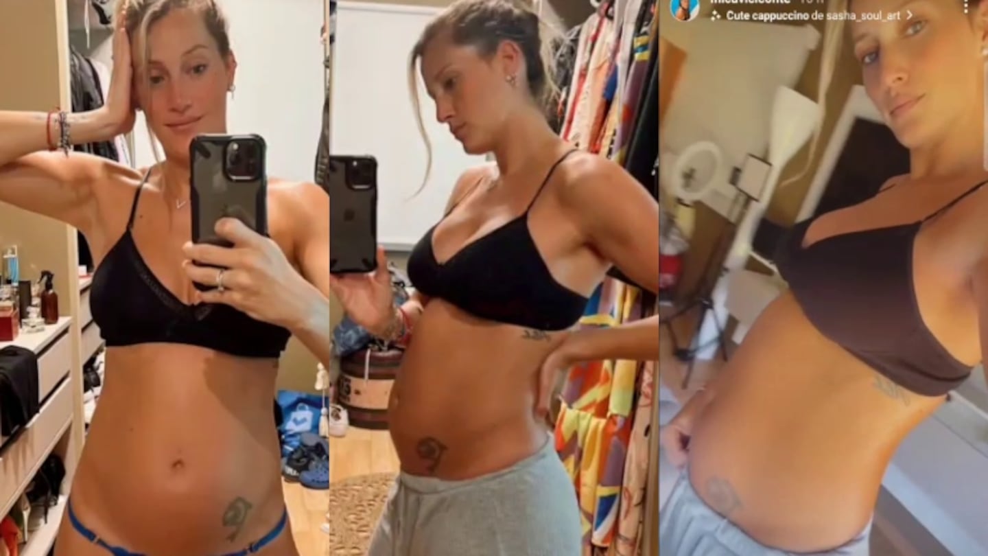 “Cambios”, escribió Viciconte sobre el posteo que plasmó en las redes, donde se ve distintas capturas para que se aprecie su pancita desde diferentes ángulos, mientras posa frente a un espejo y registra todo con su celular.