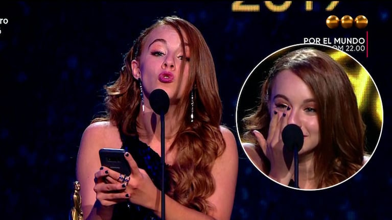 Ese rol en 100 días para enamorarse le valió la obtención del premio Martín Fierro 2019 como Mejor Actriz de Reparto, y se emocionó hasta las lágrimas a la hora de agradecer el merecido reconocimiento.