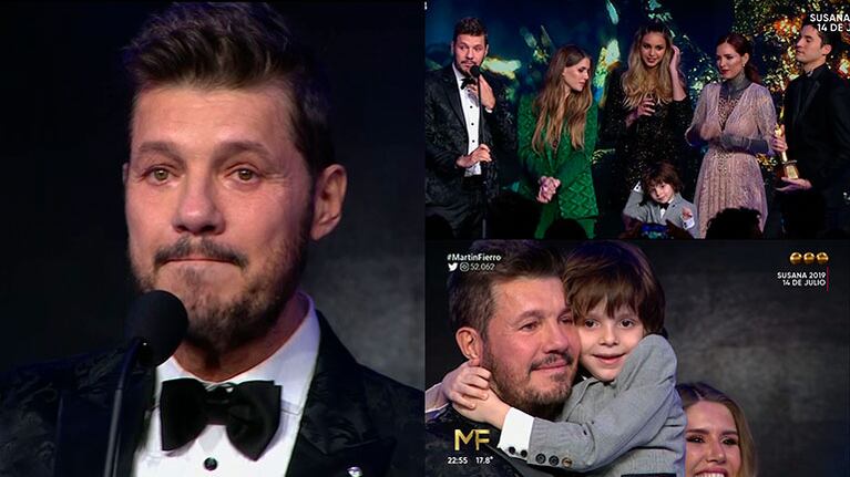 Acto seguido, mostraron un tape con algunos de los mejores momentos de la historia del ciclo y Marcelo subió a recibir su premio pero se encontró con una sorpresa: sus cinco hijos, Lorenzo, Candelaria, Micaela, Juanita y Francisco, estaban esperándolo con la estatuilla.