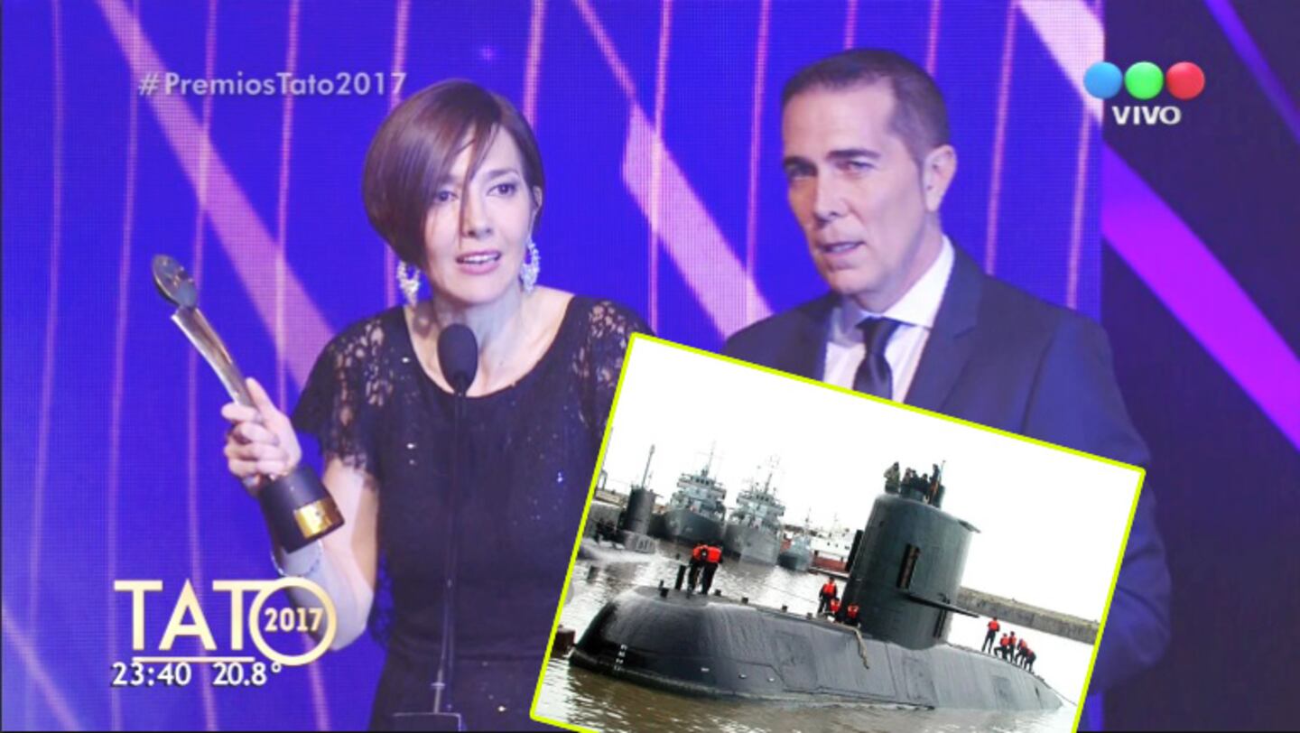 Emocionada, se dirigió a todos los presentes con un mensaje especial: "Hoy simplemente quiero pedirles a ustedes que nos acompañen y dedicarlo a las 44 familias que están en una espera agónica por sus seres queridos, a quienes perdimos todos los argentinos en el fondo del mar. Pido que hagan un minuto de silencio por los 44 para acompañarnos en este premio. No podemos olvidarnos de ellos en esta noche", cerró, ante el silencio de todos.