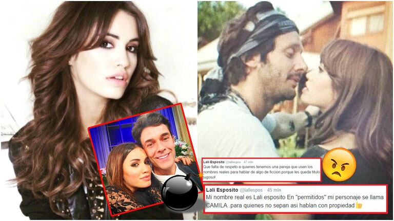 Al leer títulos engañosos tales como "Lali Espósito, la nueva 'amante' de Vicuña", la actriz twitteó. "¡Qué falta de respeto a quienes tenemos una pareja, que usen los nombres reales para hablar de algo de ficción porque les queda titulo jugoso!”. Y agregó: “Mi nombre real es Lali Espósito. En Permitidos mi personaje se llama CAMILA... para quienes no sepan, así hablan con propiedad".