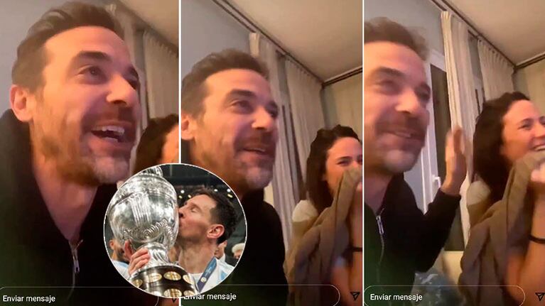 "Te amo, Lionel, más que a mi mujer. O sea, por...", gritó el actor y productor, corriendo por unos segundos su vista de la pantalla para mirar con picardía a Paula, quien lo observaba con amor y sin contener la risa.