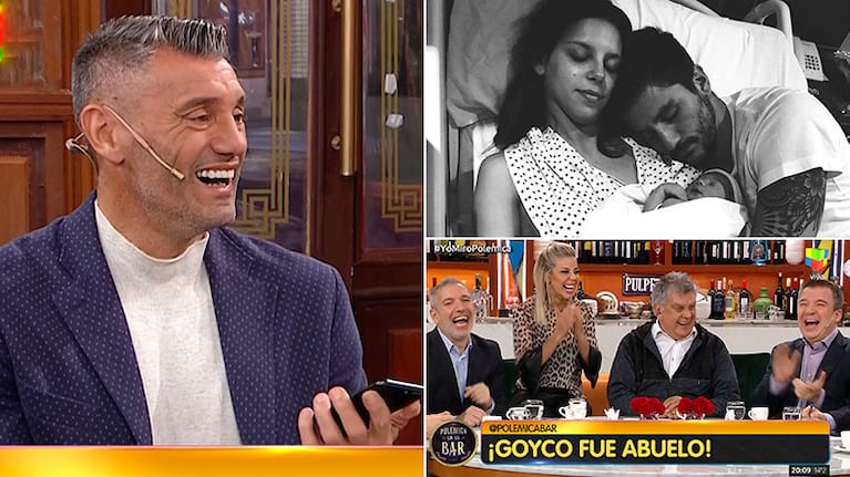 "Sabíamos que estaba en fecha, pero se adelantó un poquito: podía ser hasta el 30 de junio. Nos fuimos del casamiento y llegamos al Sanatorio de los Arcos de Palermo así como estábamos, elegantes; mi señora de vestido largo con transparencias. Cuando llegamos a la clínica, con la luz blanca, empecé a ver todo. ¡Éramos dos muñecos de torta!", relató Goyco, entre risas, en Polémica en el Bar.