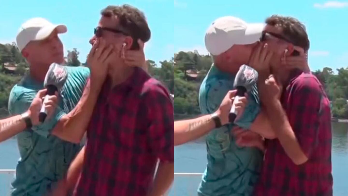 Fue allí cuando Flavio, después de hacer algunas piruetas, se dio vuelta, agarró a Pedro y lo besó frente a las cámaras sin filtros.