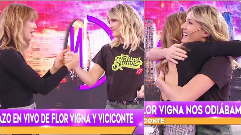 El clima ameritó que todos los presentes pidieran un abrazo entre las protagonistas de esta historia, deseo al que accedieron con mucho gusto: "Yo te dije que aprendí muchas cosas de vos y que me hiciste muy bien en muchas situaciones. La posta es esa, que nacimos juntas en un programa donde nos enfrentaban porque era el Rojo y el Verde, el River y Boca; y nos fue muy bien a las dos", analizó Vigna, tras fundirse en un cálido abrazo, con apretón de manos incluido, con la modelo.
