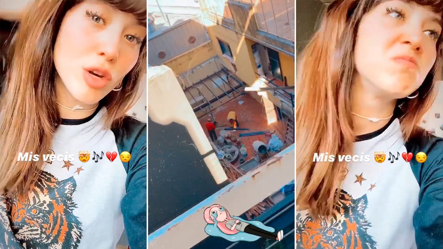 "Bueno... Yo sigo... ¿Escuchan ese ruido? ¡Todo el día así, todo el día así!", expresó junto al video, que muestra a sus vecinos en acción trabajando en el patio de su casa.
