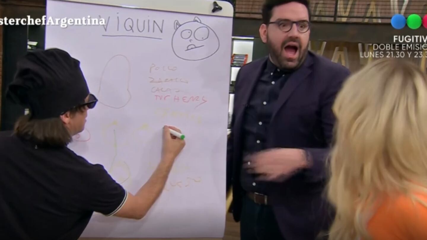 En MasterChef Celebrity: La Revancha los famosos tuvieron que jugar a un dígalo con mímica, pero en esta oportunidad dibujando todo tipo de alimentos que tenían que adivinar en grupos de dos. Vicky Xipolitakis y Joaquín Levinton hicieron dupla… ¡pero Damián Betular casi les saca la roja!