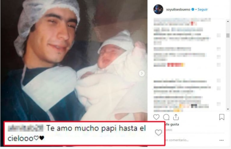 El posteo fue acompañado por una foto del momento en que Ulises sostuvo a su hija por primera vez, instantes después de haber nacido, y otra imagen actual de la chica. Con mucha simpleza y ternura, Alma le devolvió el gesto a Ulises bueno con un comentario en la publicación: “Te amo mucho, papi. Hasta el cielo”.