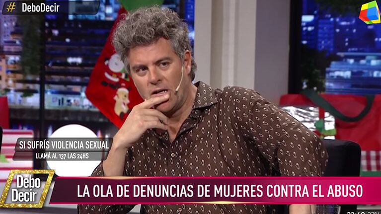 El actor refirió que fueron varias las veces que sintió que el hombre lo había tocado mientras viajaba en el subte. "Después de la segunda vez dije: 'Este tipo me está tocando el culo'. Me quedé paralizado. Mi mujer me decía: 'Imaginate que nosotras (nos aguantamos) los piropos, el colectivo, el jefe…'", concluyó el también cantante.