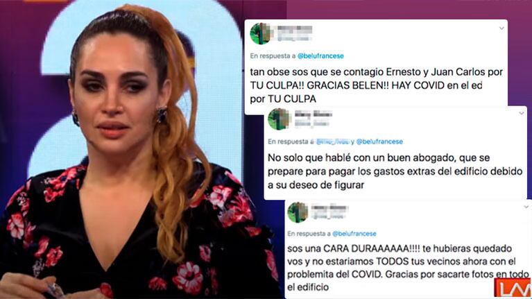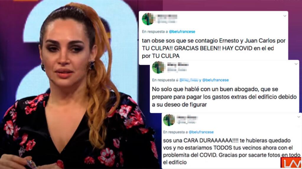 "Tan obse no sos. Se contagió Ernesto y Juan Carlos por tu culpa. ¡Gracias Belén! Hay Covid en el edificio por tu culpa".