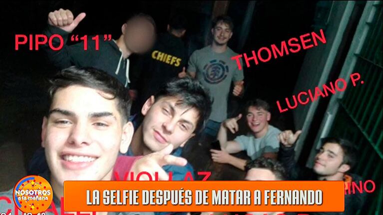 "Esta selfie tiene dos cosas que llaman la atención. La primera es que aparece Pipo, el rugbier número 11. Y fíjense que todos están vestidos igual que cuando fueron a la casa de comidas rápidas. Al que más van a identificar es a Thomsen porque está con la remera característica por el estampado. En segundo lugar veo a un grupo de pibes que están contentos, se los ve bien, después de haber matado a alguien. No sé dónde están las culpas, pero no solo que no te vas a dormir, no solo que no vas a comer, no te cambias y no huís, no te sacás esta foto. A mí me indigna", expresó el conductor, molesto por el accionar de los imputados.
