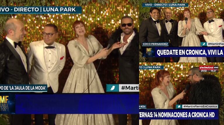 El Luna Park fue el lugar elegido para la vuelta de los Premios Martín Fierro de Cable, tras casi dos años sin gala por la pandemia del Covid-19. Quienes dieron que hablar fueron los integrantes de La jaula de la moda (lunes a viernes a las 18 hs por Ciudad Magazine), nominamos en la terna de ciclo de Moda/ Femenino, gracias a sus elegantes y atrevidos looks como por su humor.