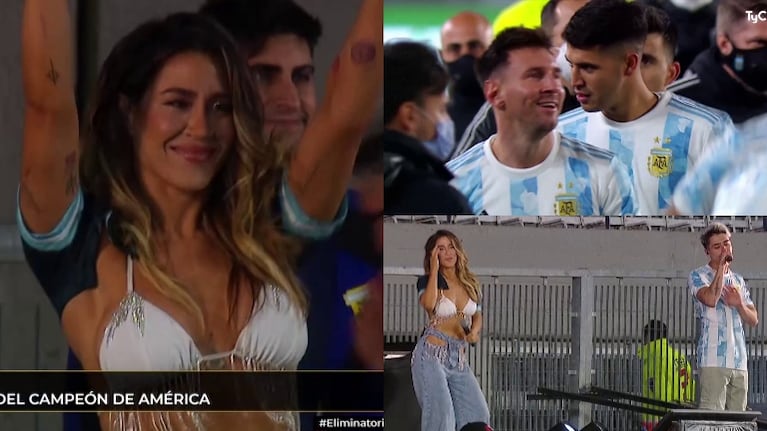 La cantante interpretó junto al trapero cordobés Luck Ra un tema alusivo a las victorias que viene acumulando la Selección. La cantante brilló vestida con un sensual look, mezcla de camiseta de Argentina y bikini.