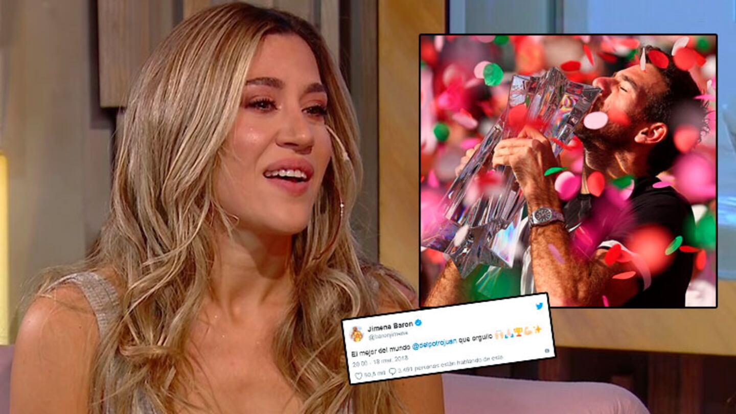 Al menos así quedó demostrado el domingo 18: el tenista se coronó campeón del Masters 1000 de Indian Wells, tras vencer al N°1 del mundo, Roger Federer, y la actriz ¿sorprendió? al mandarle un significativo tweet, emocionada por su victoria. "El mejor del mundo @delpotrojuan, qué orgullo", escribió Barón, en lo que muchos tomaron como un gesto de acercamiento de la cantante hacia el tenista. Y hasta algunos plantearon una hipotética reconciliación.