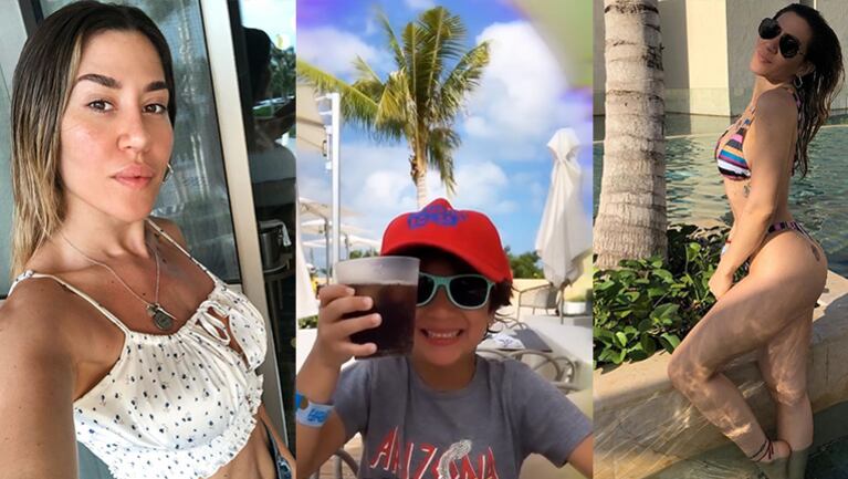 Ni bien dio su último ¡e impresionante! show en el Luna Park, Jimena Barón y su hijo Momo viajaron al destino que eligieron juntos: México. Recién llegados, el nene le sacó varias fotos a su mamá, luciendo su figura en bikini, al borde de la pileta del hotel.