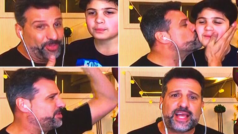 Todo iba bien, hasta que notó que Franco estaba ganando toda la atención y, muy divertido, lo "echó". "Andá, tomátelas; ¡no me saques protagonismo!", le gritó. Acto siguiente, el nene se retiró (después de que su papá le diera un beso en la mejilla) y todos estallaron de risa.