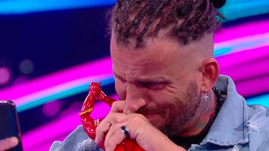 “¡Mirá, ahí está tu hijo desde España! Saludalo tranquilo, hermano”, le aconsejó el conductor al ex participante al ver que le extendían un teléfono con una videollamada con el joven Juan Cruz Reverdito.