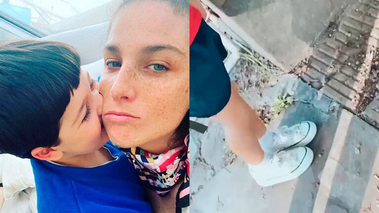“Mirá. Limpié las zapatillas”, dijo la actriz mirando a cámara y luego le preguntó a su hijo ironizando las críticas: “¿No te diste cuenta? ¿Ayer sufriste mucho porque te mandé con las zapatillas sucias?”.