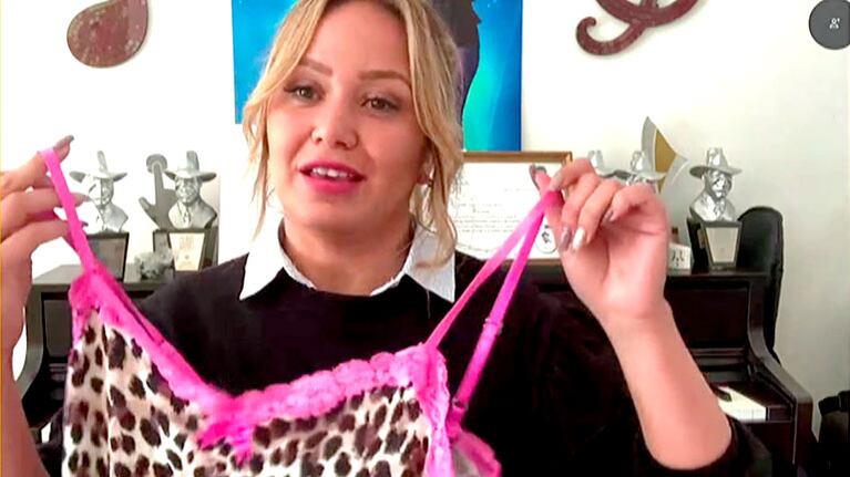 Karina contó que en el inicio de la cuarentena fue una de las que 'hizo todo perfecto' en lo referente a que no salió de su casa y la pasó mayormente en ropa de cama. "Había mucha incertidumbre al respecto así que la pasé mayormente en pijama, como por ejemplo este de animal print", dijo exhibiendo un camisolín con estampado de leopardo.