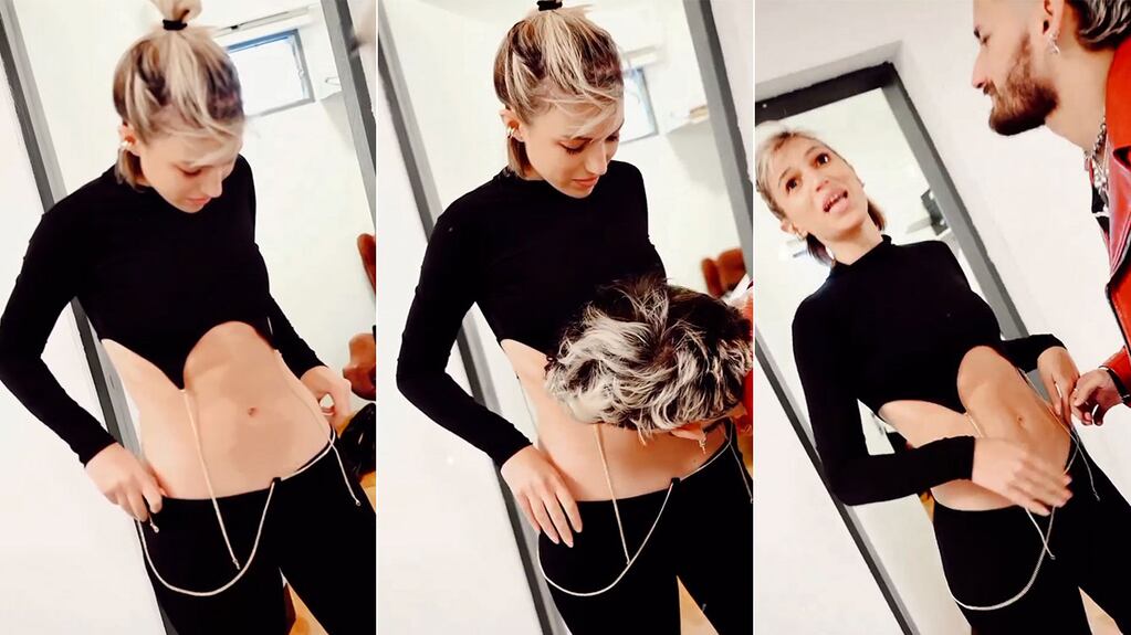 En el clip se puede ver a Lali con su compañero de jurado, Ricky, junto a la host digital del programa, Stefi, y los otros integrantes en el back del ciclo. En medio de las charlas y las risas, el cantante le da un beso a su novia en la panza.