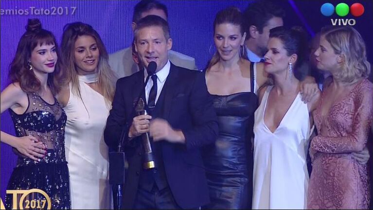 Adrián Suar se mostró encantado por la distinción y las protagonistas, además de demostrar toda su felicidad, le pusieron una cuota de glamour y belleza al momento de agradecer su premio. Mientras Marcela Kloosterboer y Celeste Cid apostaron por el color negro, la primera con un vestido corto y la otra con uno largo, Violeta Urtizberea y Natalie Pérez eligieron diseños en blanco. Justina Bustos, por su parte, le puso una cuota de color con un vestido rosa viejo con aires vintage.