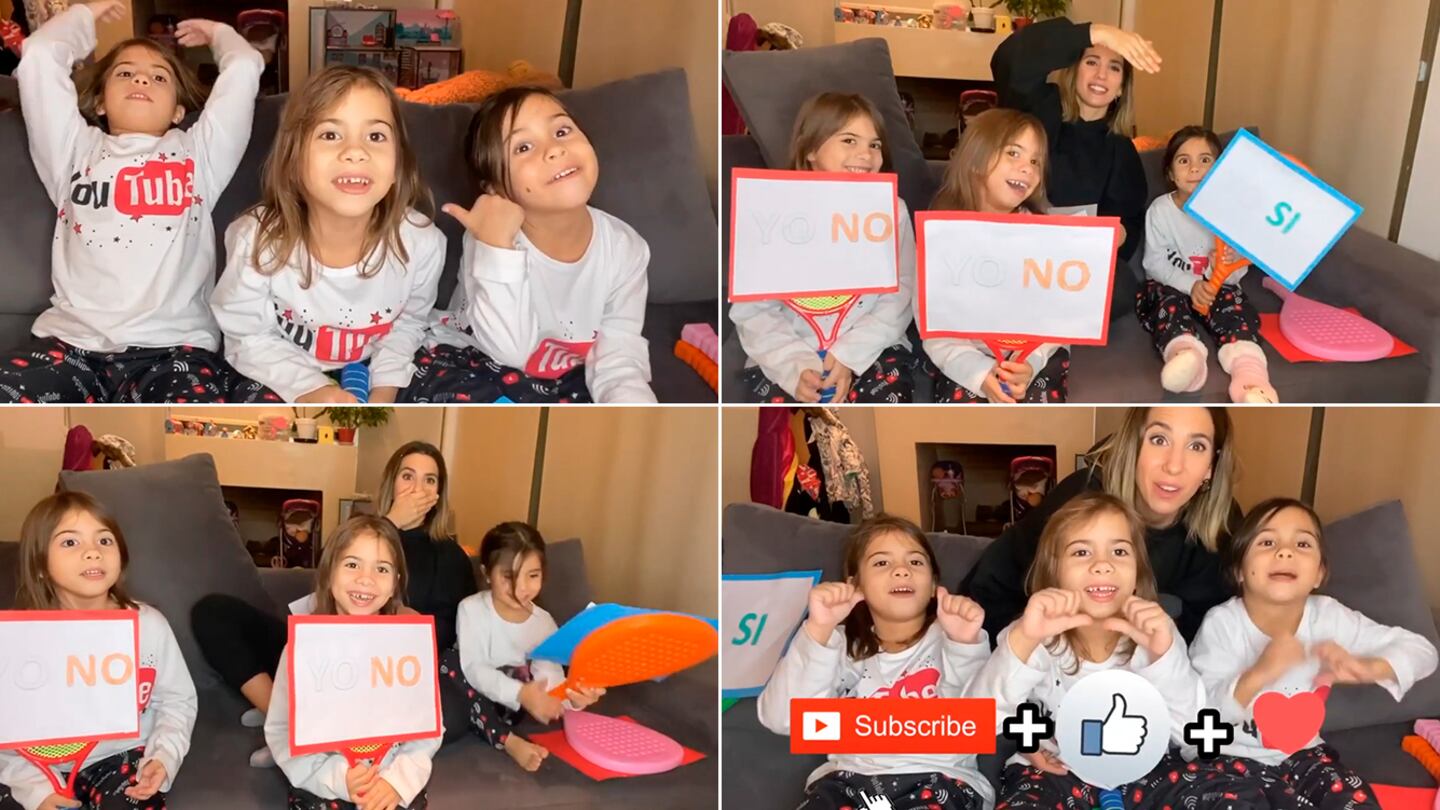 Sentadas en un sillón con una tierna remera de mangas largas que dice YouTube, las hijas de Cinthia Fernández y Matías Defederico, Charis, Bella y Francesca, grabaron su primer video junto a su mamá para la plataforma.