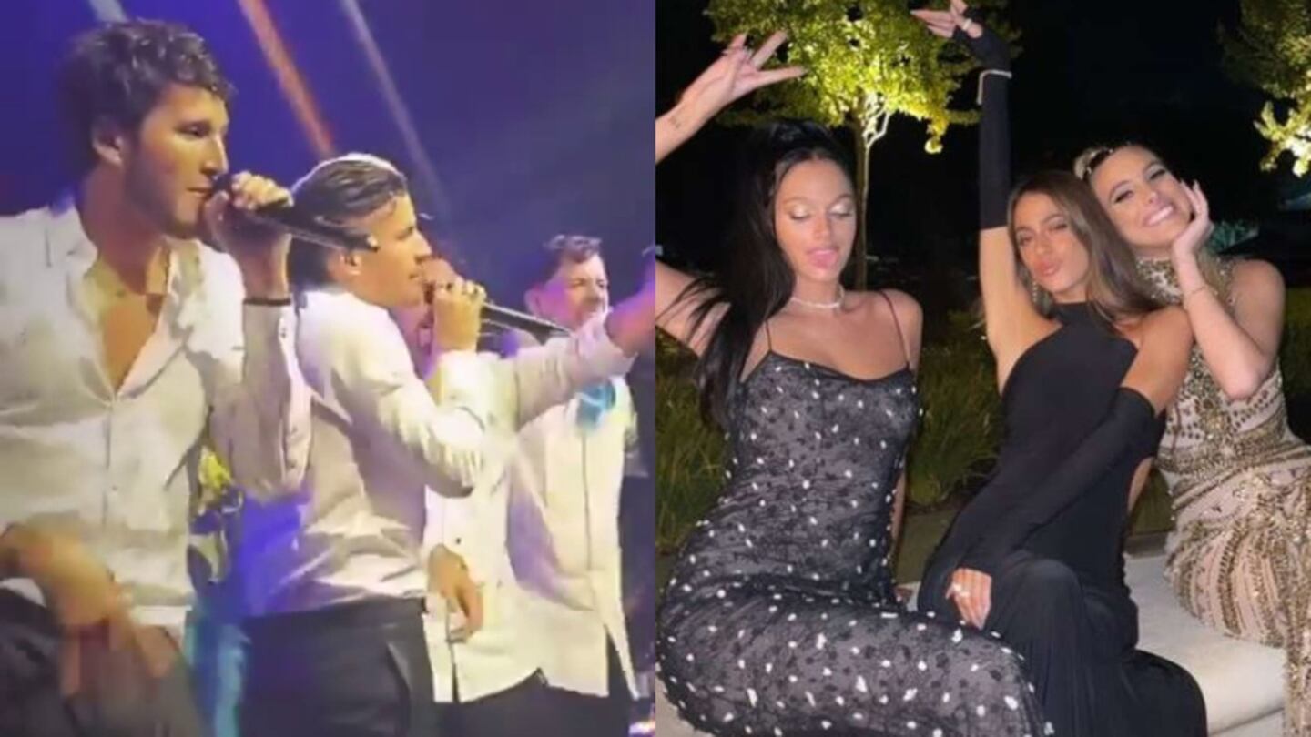 En ninguna de las imágenes aparecen juntos, ella posó sexy enfundada en un vestido negro junto a Oriana Sabatini y Lele Pons. Mientras que él, por su parte, apareció cantando arriba del escenario con Mau y Ricky como regalo de boda, luego de llegar al predio solo acompañado por un guardaespaldas.