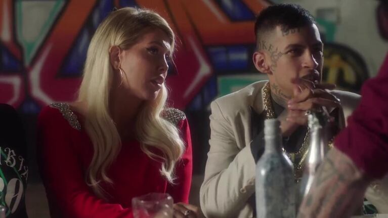 En el reel que el músico subió a su cuenta personal de Instagram, se ve a Wanda vestida con un elegante vestido rojo y L-Gante a su lado comiendo con un enorme grupo de personas mientras reciben la agresión de un misterioso hombre.
