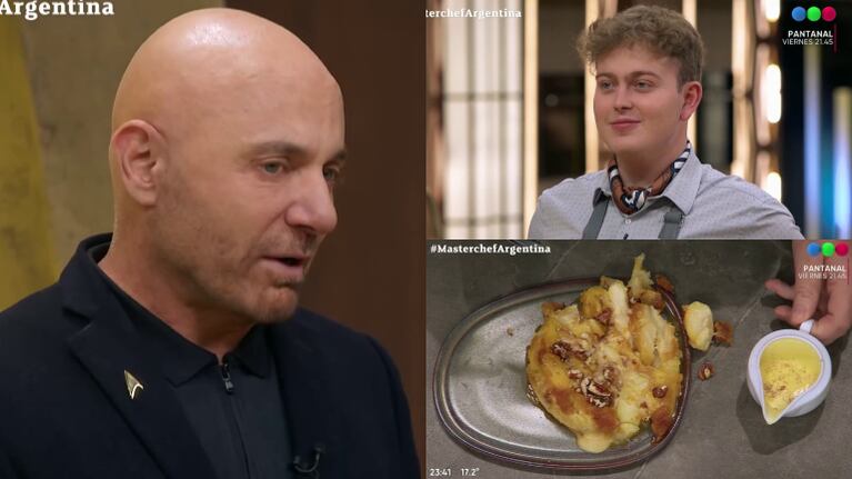 Lejos de que el beneficio que recibió Aquiles González Sviatschi de contar con la ayuda de Wanda Nara durante 5 minutos para lucirse con su plato en MasterChef lo ayudara, el participante se encontró con una letal crítica de Germán Martitegui.