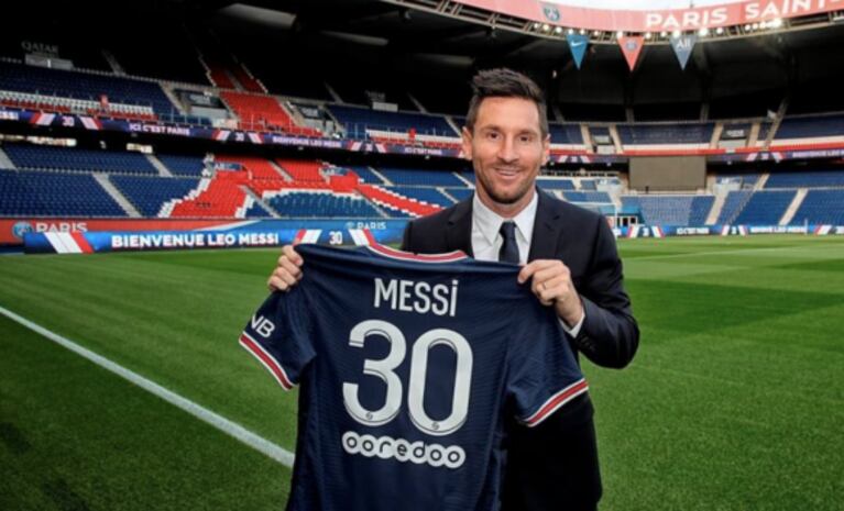 Aunque muchos pensaban que Lio usaría la camiseta con el número 10, cuando la alzó se pudo ver el 30. Según trascendió, su elección sería un romántico gesto a la mamá de sus tres hijos, Antonela Roccuzzo.