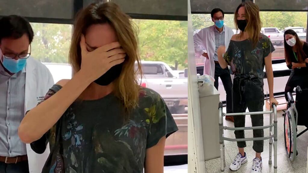"Llegó el día, 10 semanas después de la operación pude pararme. Me siento una jirafa bebé. Volver a empezar, acompañada de amor, rezos , meditaciones y alegría", expresó Vero en Instagram junto al clip que la muestra con su médico, de pie tras haberse bajado sola de la camilla, llorando de emoción y dando sus primeros pasitos con un andador.