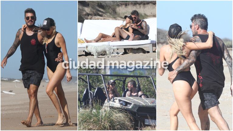 Como cualquier pareja con nenes chiquitos, llevaron juguetes para su nene se divierta con la arena, mientras la pareja se dedicó a broncearse y a tomar mates, mientras compartían mimos. También hubo tiempo para un paseo al costado del mar con sus perros y Guille mostró toda su sensualidad con una bikini negra. ¡Muy bomba!