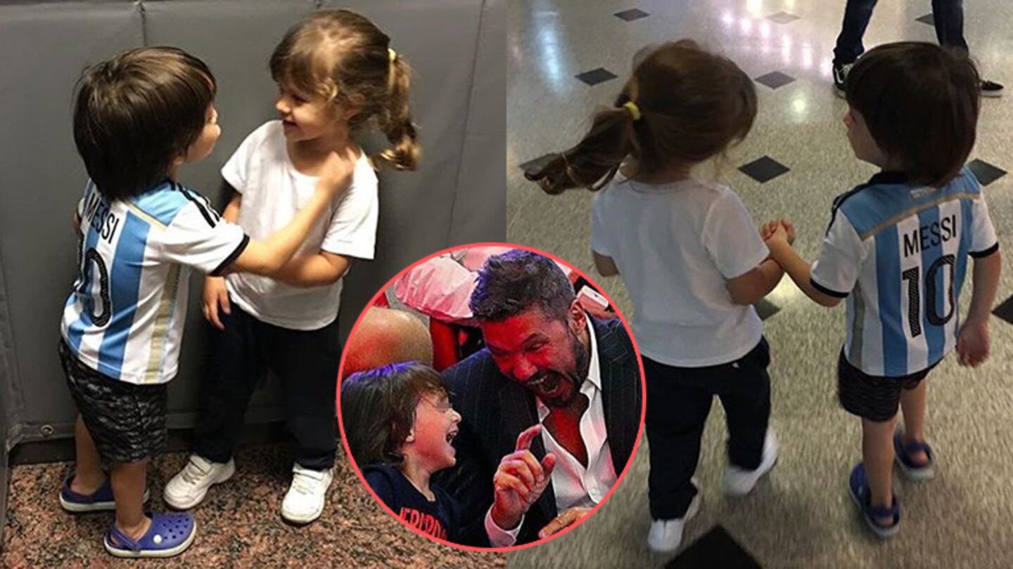 “Parece que Messi tiene novia y quiere meter un pico, jaja. Amo a Lolo”, escribió Marcelo junto a una de las postales, donde se ve a su hijo intentando darle un beso en el ascensor a su amiguita.