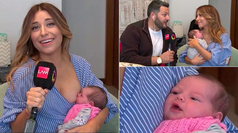 Dada de alta, luego de dar a luz a la niña en el Sanatorio de los Arcos, por parto natural, Mariana dio su primer móvil junto a la recién nacida, a quien no dudó en amamantar en vivo ante un incipiente llanto.
