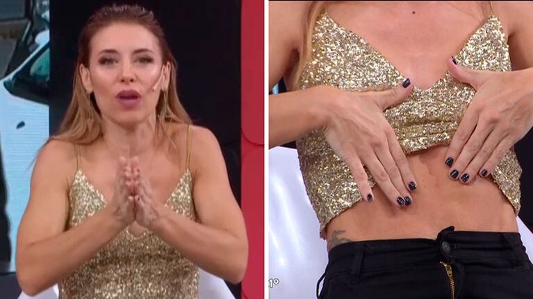 “Cuanto más recto se tiene el abdomen, más chances hay de que se rompa”, continuó. En ese punto, la panelista se paró en el centro del estudio y mostró su caso específico al señalar la línea imaginaria que hay en la panza entre el ombligo y el esternón: “No me quedó muy marcado, pero tiene que ver con esto que se ve acá, que es una abertura. Es esta rayita que todas tenemos, pero que cuando una es mamá se abre más”.